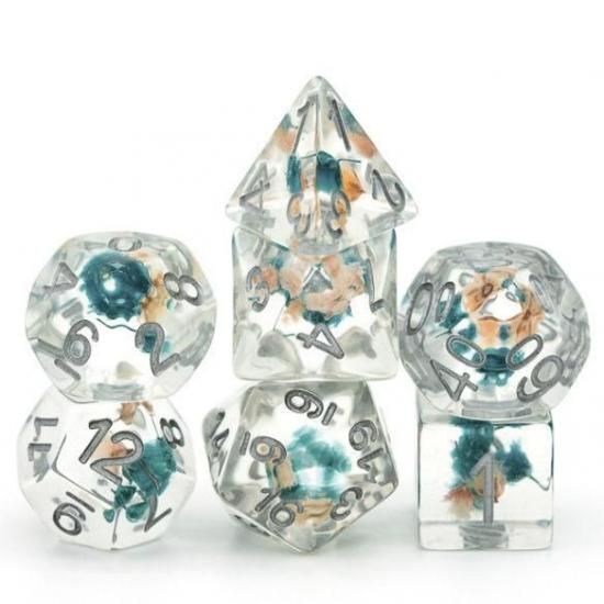フラワーダイス【青&ベージュ】 多面体サイコロ7個セット カスミソウ